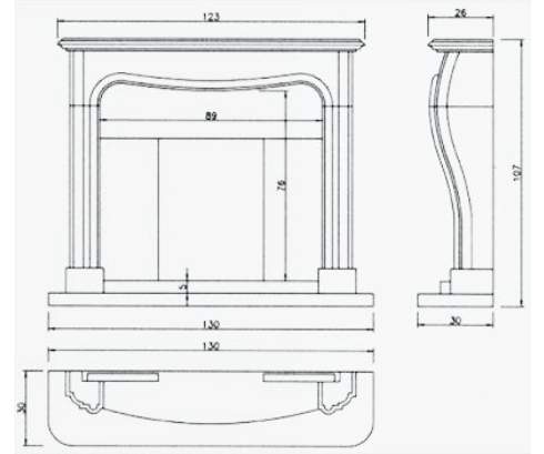 Изменение размеров камина в сумме по трем измерениям (ширина, высота, глубина) не более 10 см - бесплатно.